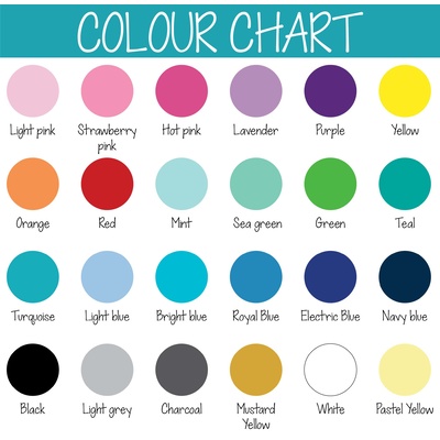 Please Note: Colours may vary slightly from what you see on your screen due to differences in viewing devices, monitors and computer settings. Please be aware the image colour may vary slightly to the exact colour that transfers onto the item.