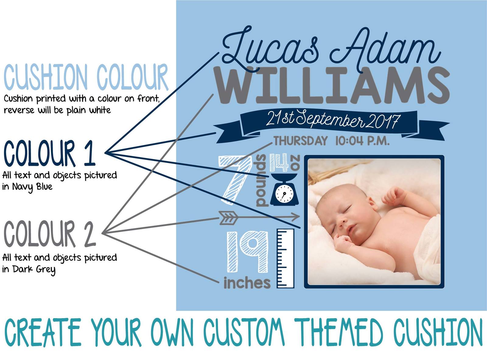 How special! Celebrate the arrival of your new baby with these personalised birth announcement cushion covers.