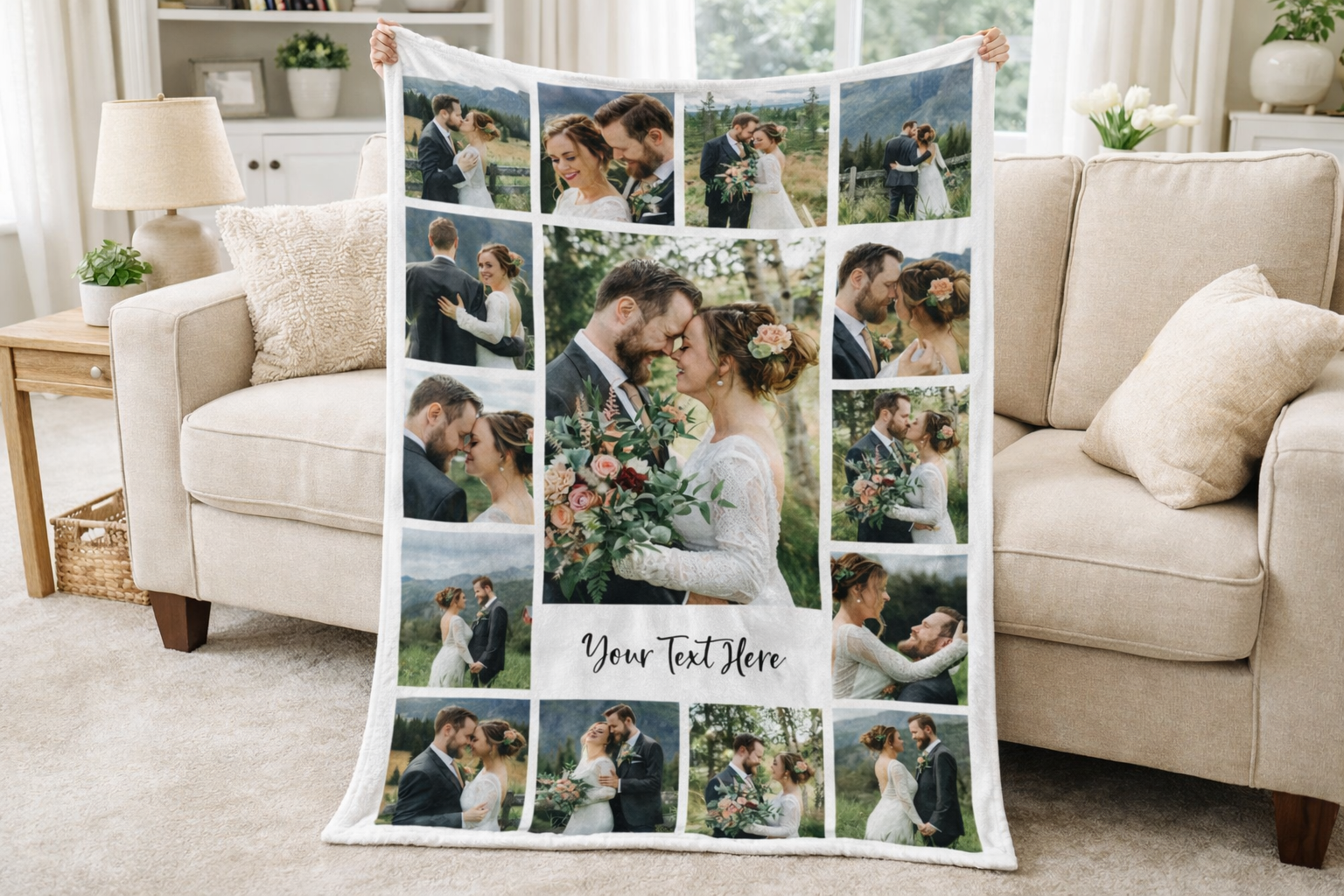 This isn’t just a blanket — it’s a one‑of‑a‑kind memory keeper. Simply send us your favourite photos (like wedding photos, family snaps, travel moments, pets, or celebrations), and our expert designers will craft a beautiful, bespoke collage that tells your story. Unlike other custom photo products, you don’t need to design anything yourself — we do all the work for you, making it a truly easy, stress‑free gift to order.