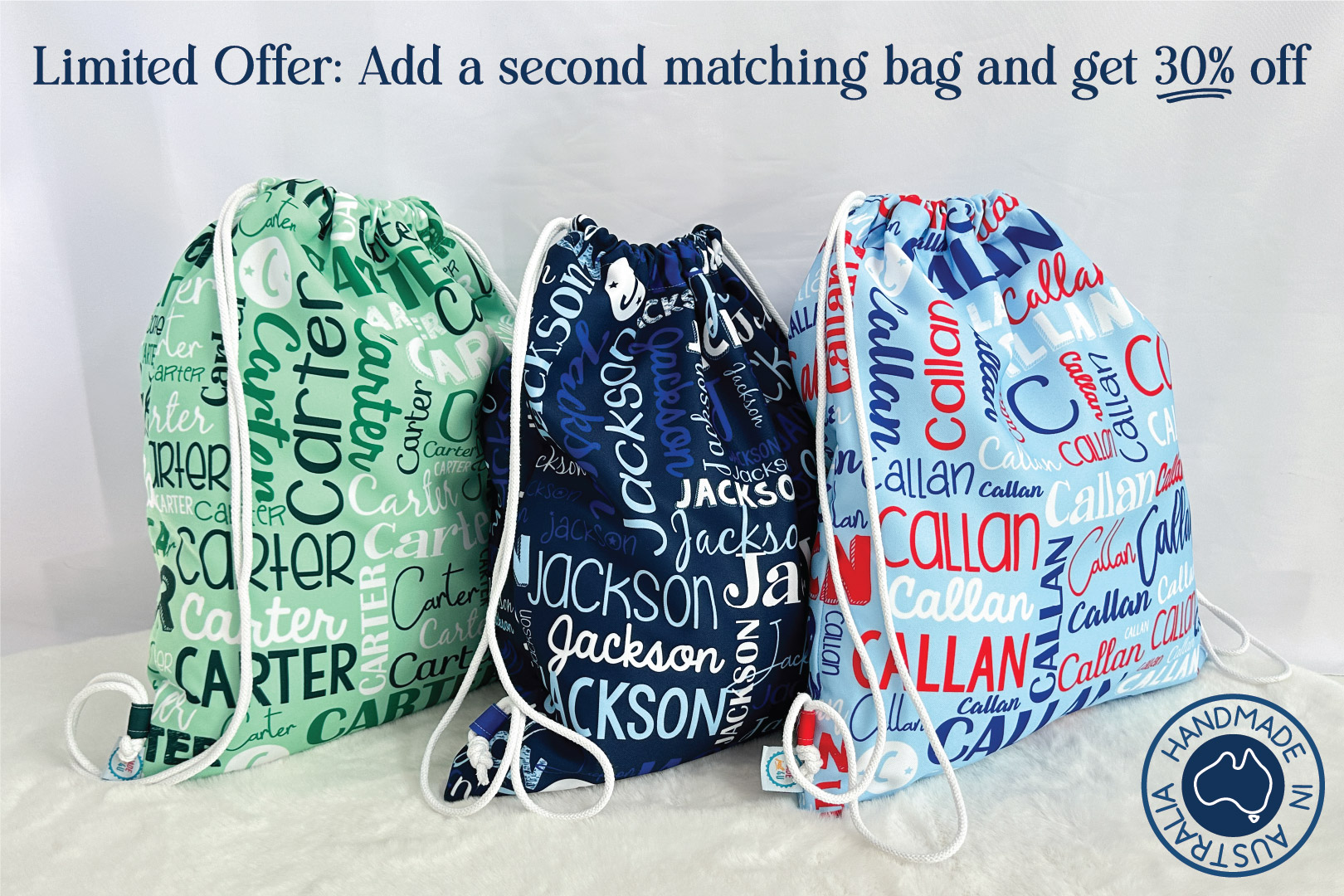 Tip from our happy customers: Pair a personalised bag with a matching blanket or towel for the ultimate gift set.