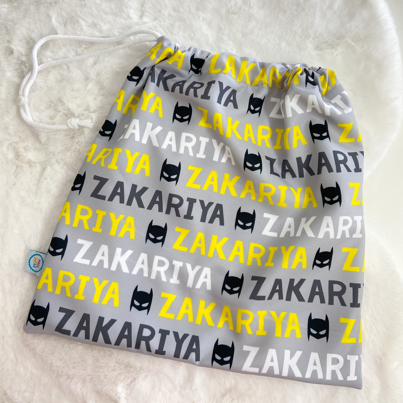 Fabric is printed and then cut and sewn into the bags for a flawless edge to edge finish right here in our Brisbane home studio. All bags are personalised with your chosen name. First name or First and Last name work best in this design. Long names will change the placement of the pattern. We can also have a first name repeating over the bag with their full name in bold at the top/bottom of the bag if you wish, please send us an email.