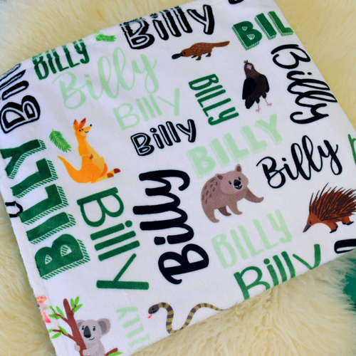 All Made Just 4 U blankets are printed on thick quality minky that is so incredibly soft, your loved one will love snuggling up in their new blanket. Made in Australia from locally sourced materials. Minky material is 100% polyester, they will last countless washes and are very durable and eco-friendly.